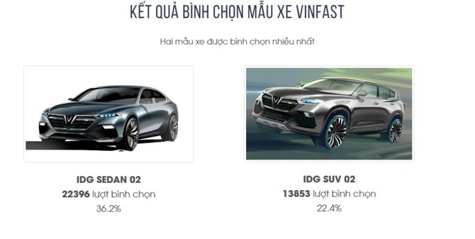 Đến tháng 10/2017, VinFast đã tung ra 20 mẫu thiết kế ô tô cho người Việt bình chọn. Đây là những mẫu ô tô do các hãng thiết kế xe nổi tiếng của Ý là Pininfarina, Zagato, Torino và ItalDesign tạo ra. Từ 20 mẫu này, VinFast sẽ chọn ra 1 xe sedan và 1 xe SUV để đưa vào sản xuất.