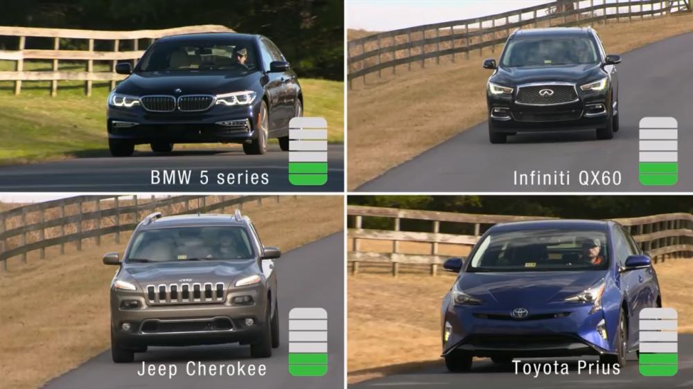 Là một phần trong nghiên cứu của tổ chức IIHS, một đội các kỹ sư đã kiểm tra một số mẫu xe 2017 bao gồm BMW 5-Series, Cadillac XT5, Infiniti QX60, Jeep Cherokee, Subaru Outback và Toyota Prius.