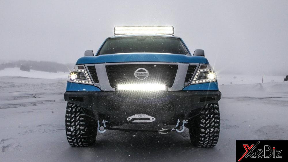 Bộ cản trước của xe được thay thế bằng loại sẵn sàng đi off-road, bao gồm thanh bảo vệ lưới tản nhiệt và tời kéo 5.443 kg. Bậc cửa bên sườn, thanh chắn đá, đèn sương mù LED 5 inch, thanh đèn LED hai hàng, đề-can dán thân xe riêng với logo Armada Snow Patrol và giá buộc đồ trên nóc xe góp phần hoàn thiện vẻ ngoài cho mẫu “chiến binh mùa đông” của Nissan.