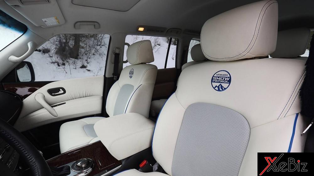 Nội thất xe có một chút thay đổi với bộ ghế ngồi mới và thêu logo Armada Snow Patrol