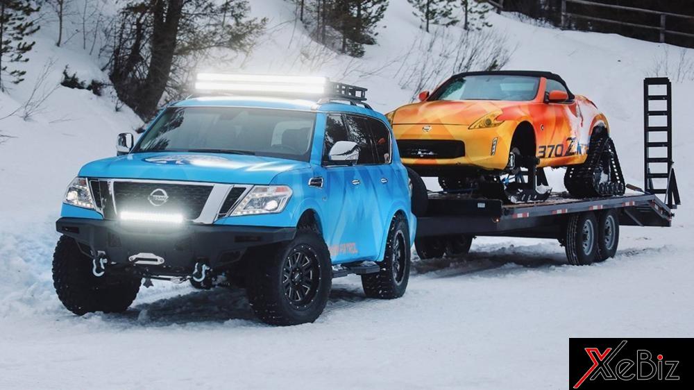 Hình ảnh Nissan Armada Snow Patrol kéo một chiếc 370Zki