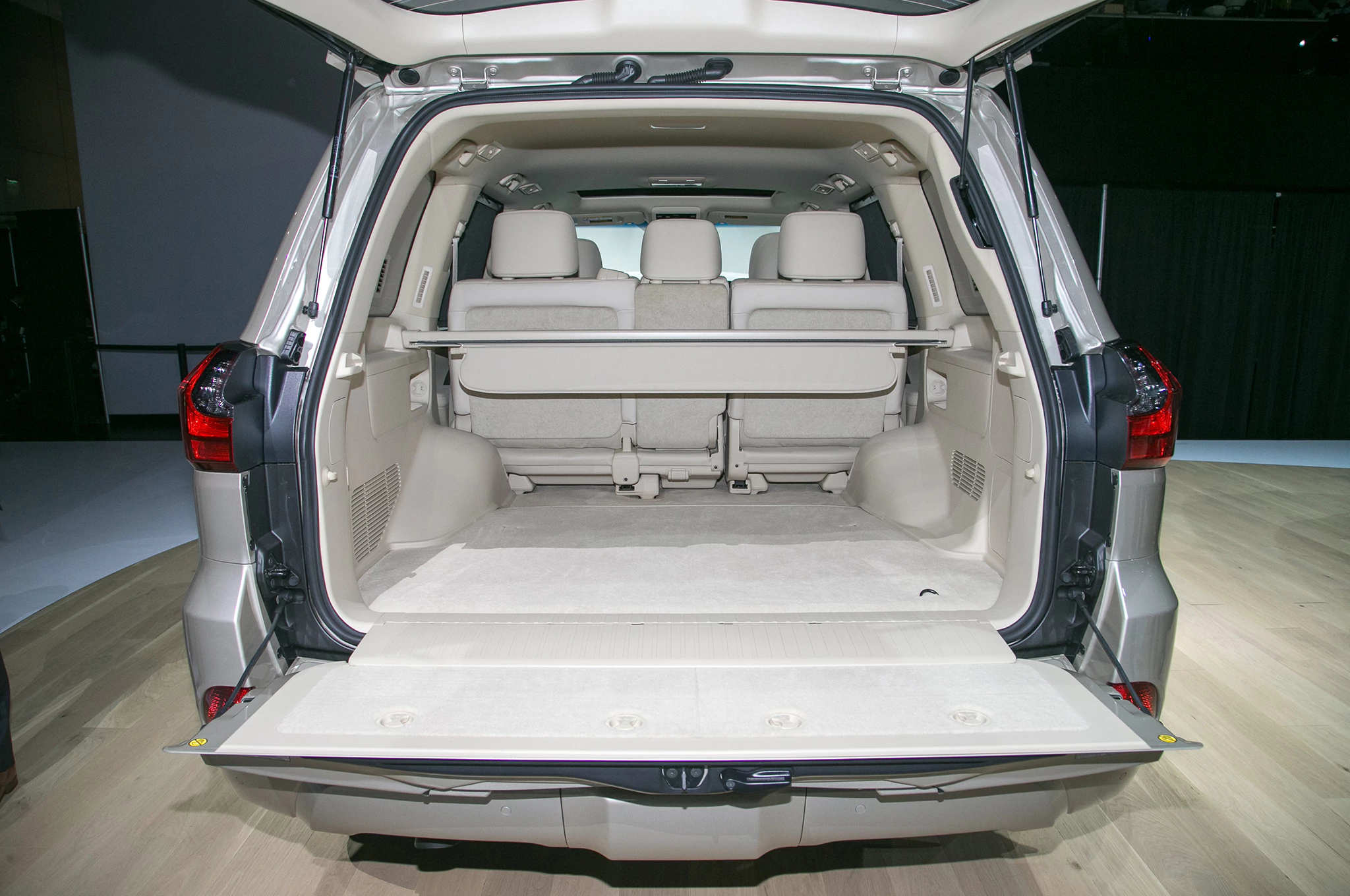 Nhờ sự biến mất của hàng ghế thứ 3, Lexus LX570 2018 mới mang đến khoang hành lý có thể tích 1.430 lít, tăng 15% so với phiên bản 7 chỗ trước đây.