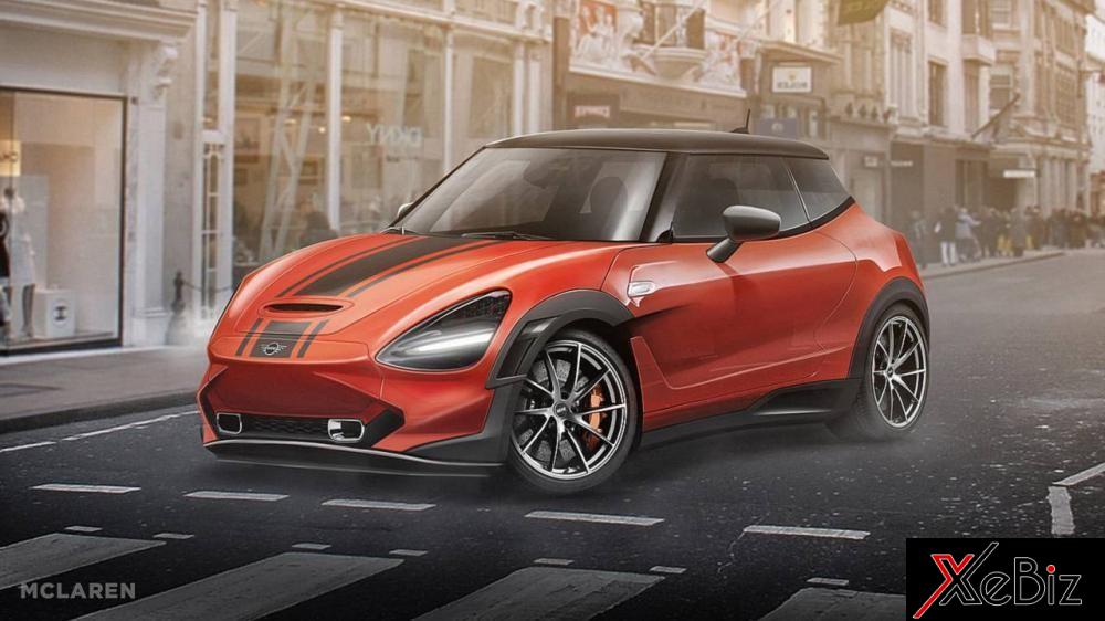 McLaren, một nhà sản xuất xe Anh Quốc khác, chuyên làm siêu xe với thiết kế dốc dẫn gió quanh thân vỏ khí động học. Điều đó không thực sự hợp với kiểu thẩm mỹ vuông vức của Mini, nhưng mẫu Mini McLaren ở đây vẫn giữ được phần mũi và đèn pha độc nhất của McLaren trong khi giữ lại khoang lái của Mini. Kể cả phần cánh cửa của xe cũng giống kiểu McLaren.