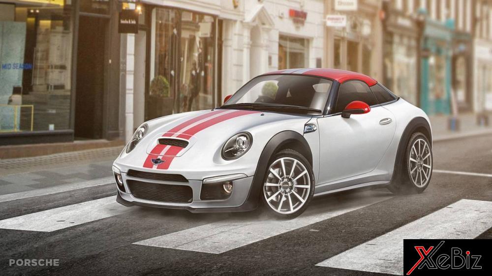 Đèn pha tròn của Porsche 911 dễ dàng hòa hợp với phong cách thiết kế đèn tương tự của Mini. Phần nóc xe ở đây rõ ràng là lấy từ Mini Coupe, và nó cũng rất hợp với tỷ lệ kích thước của 911. Đường bao nóc dốc có gắng giữ phong cách thiết kế của Porsche nhưng nhìn nó thật quái đản. Lớp sơn phủ màu đen quanh hốc bánh, và bên dưới thềm cửa hoàn thiện một dáng vẻ kiểu Mini.