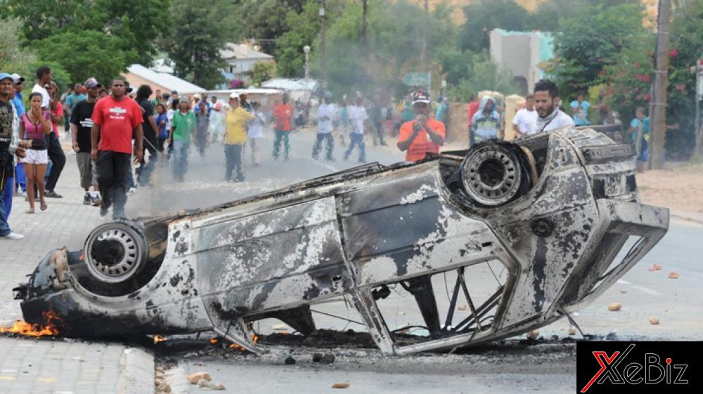 Một chiếc xe bị lật úp, cháy thành tro trên đường phố Cape Town, Nam Phi