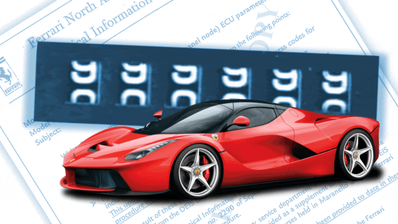 Bản ghi chú có nhắc đến một công cụ chẩn đoán của Ferrari với tên gọi DEIS Tester, được sử dụng trong tất cả các dịch vụ hợp pháp cần thiết, nhưng cũng có khả năng tua lại đồng hô công-tơ-mét nữa. Ở trong một số trường hợp, đồng hồ công-tơ-mét thậm chí được tua về dãy số 0 tròn trĩnh.