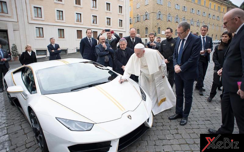 Đừng mong đợi được thấy cảnh Giáo Hoàng thực hiện một pha drift quanh Quảng trường St Peter trong chiếc siêu xe Huracan đặc biệt. Chiếc Lamborghini ở hình trên đã được tặng cho Giáo Hoàng trong tháng 11 năm 2017 để ban phước cho nó trước khi nó được bán đấu giá gây tiền từ thiện.