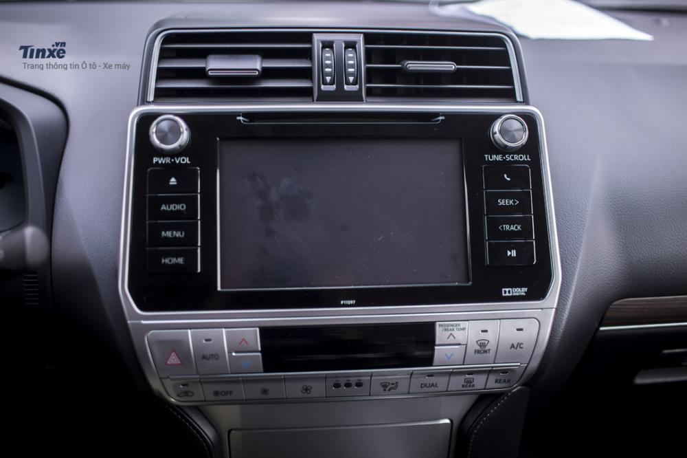 Khu trung tâm có thiết kế khá cổ điển với những nút bấm vuông vắn và to bản. Nhưng bù lại, Toyota Land Cruiser Prado 2017 có thêm màn hình giải trí.