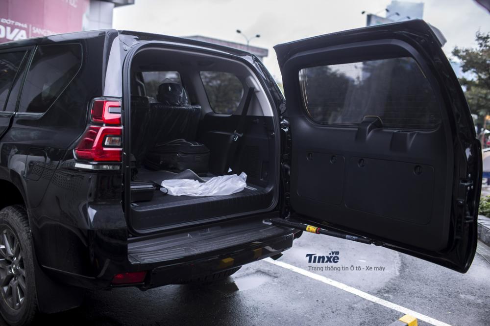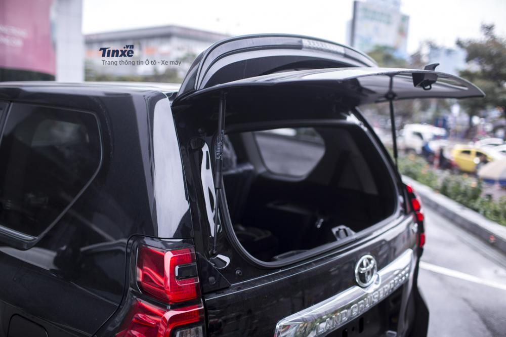 Cửa sau của Toyota Land Cruiser Prado 2017 thiết kế dạng mở ngang và lốp xe được lắp bên dưới gầm xe.