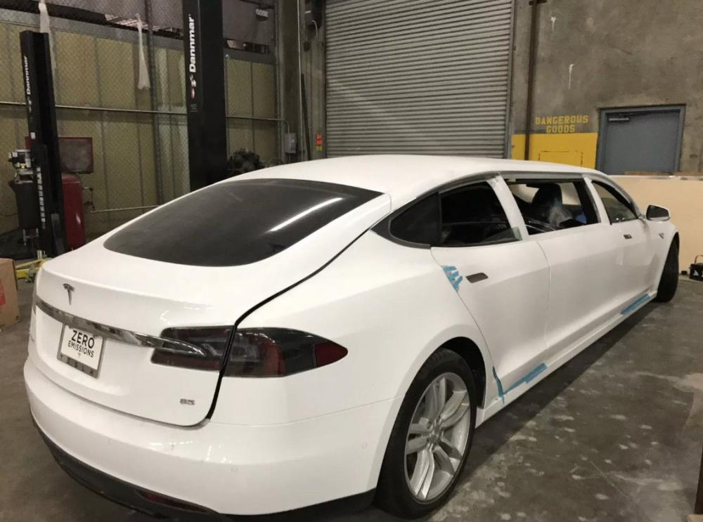 Trước khi trở thành xe limousine, chiếc Tesla Model S này đã được cắt ra làm đôi. Sau đó, phần thân vỏ mới được nối vào giữa để biến chiếc Tesla Model S thành xe limousine.