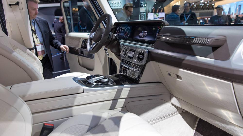 Là thành viên của gia đình Mercedes-Benz nên G-Class 2019 cũng đi kèm 2 màn hình kỹ thuật số 12,3 inch dành cho bảng đồng hồ và hệ thống thông tin giải trí. Ngoài hai màn hình nối liền với nhau này, Mercedes-Benz G-Class 2019 còn có ghế sưởi ấm, dàn âm thanh 7 loa và nhiều ngăn chứa đồ mới tiện dụng hơn.