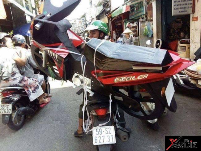 “Trần sao âm vậy”, chiếc xe không được các “chủ chó” yêu thích lắm là Yamaha Exciter cũng được giấy hóa với kích thước lớn y như thật để thỏa mãn đam mê tốc độ.
