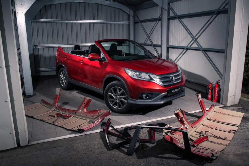 Với một chút thủ thuật Photoshop để loại bỏ đi phần mái, Honda đã cho ra đời mẫu Concept CR-V Roadster vô cùng thú vị. Nhà sản xuất xe Nhật Bản khẳng định rằng nó được thiết kế “để sử dụng cho thời tiết nắng đẹp hơn và vì thế sẽ hoàn toàn vô dụng ở Anh Quốc.” Kể ra đây cũng là một trò đùa có sức thuyết phục khi trước đây người ta đã từng thấy Land Rover tiến hành sản xuất thương mại Range Rover Evoque mui trần.