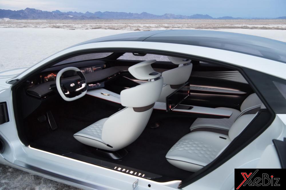 Nội thất xe mang thiết kế tương lai, tối giản và hiện đại. Không những thế, Infiniti Q Inspiration Concept còn có khả năng cách âm rất tốt, giúp người lái xe tập trung hoàn toàn vào việc điều khiển xe. Về tiện ích, mỗi hành khách sẽ có một màn hình cảm ứng riêng để tương tác và giải trí, ngoài ra hệ thống này còn có thể giám sát biểu đồ sinh trắc học của mỗi hành khách trên xe.