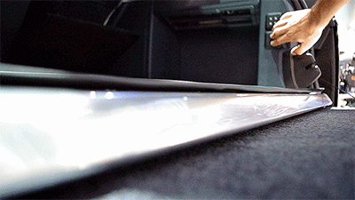 Trên sàn còn có tấm ốp gỗ có thể trượt ra/vào khi hành khách ấn nút. Tuy nhiên, tấm ốp gỗ này có thể bị kẹt nếu vướng phải túi đồ nào đó nằm trên sàn.