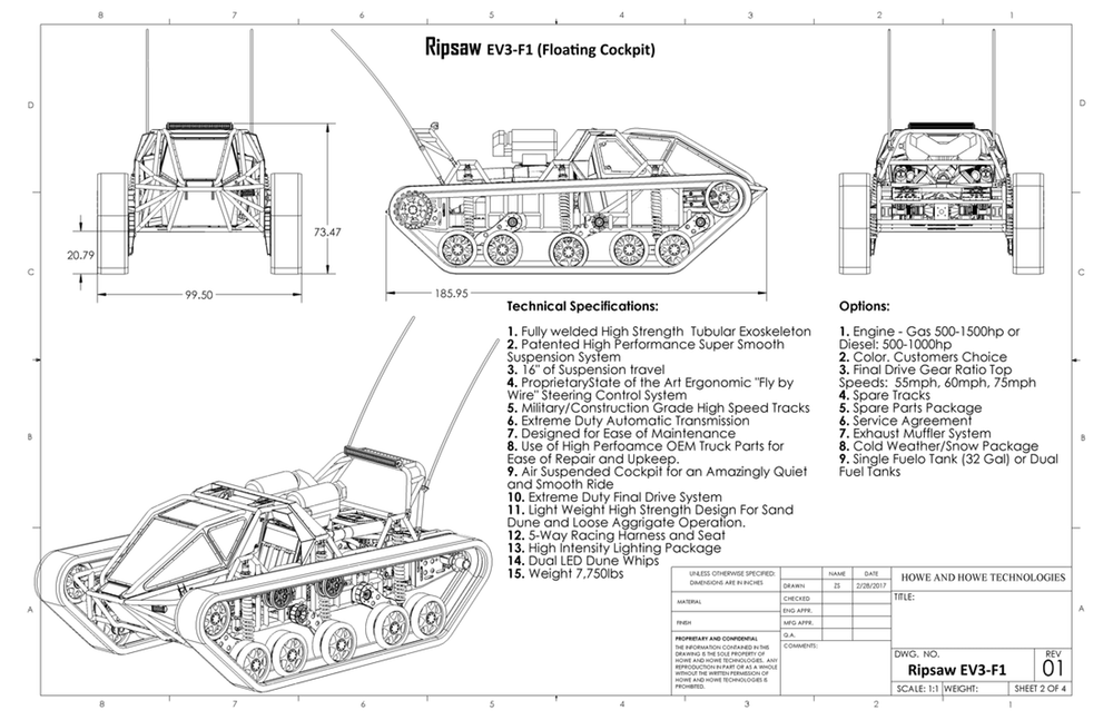 Các kỹ sư tại Howe & Howe vốn nổi tiếng là “phát cuồng” vì bánh xích xe tăng. Họ có thể lắp bánh xích xe tăng cho bất kỳ thứ gì, từ ghế cho đến một con rô-rốt khổng lồ. Tuy nhiên, thứ mà họ thích nhất là tạo ra những “chiếc xe tăng sang trọng và độc đáo”. Ripsaw EV3-F1 là một minh chứng điển hình.
