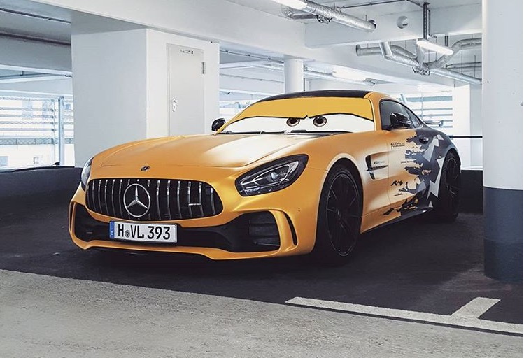 Bỏ qua bộ áo xanh lá cây “hàng thửa” trên Mercedes-AMG GT R, chủ nhân của chiếc siêu xe ​tốc độ đến từ Đức chọn ngoại thất theo cảm hứng từ ô tô trong bộ phim hoạt hình vui nhộn “Vương quốc xe hơi”.