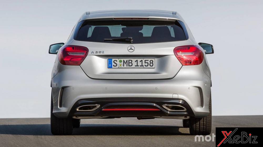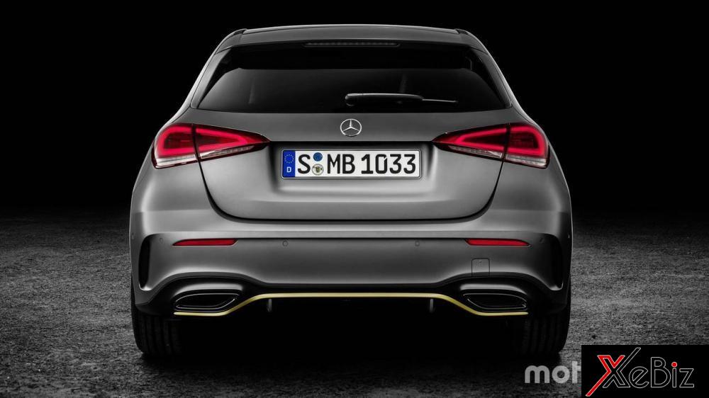 Phần đằng sau của Mercedes-Benz A-Class mới rất đẹp, ít nhất là đẹp hơn hẳn so với thế hệ hiện tại. Cụm đèn hậu phồng ra ở mẫu trước đã bị loại bỏ, thay thế vào đó là loại hoàn toàn mới kéo dài từ góc khu vực lắp biển sổ cho tới tấm ốp thân bên sườn. Bộ khuếch tán gió phía sau trở nên rõ ràng hơn, và tùy thuộc vào phiên bản, nó có thể đi kèm với đường viền màu vàng. Nóc dốc về phía sau khiến chiều cao của cửa sổ sau bị giảm đi một chút, nhưng nhìn chung là cuốn hút hơn mẫu trước.