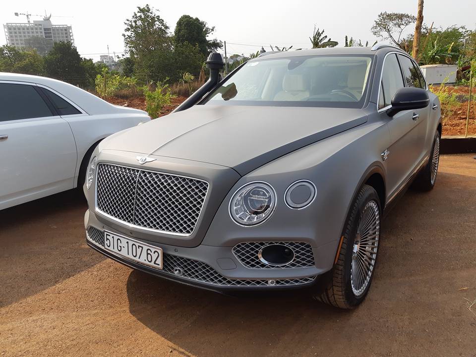 Thêm 1 cặp xe siêu sang nữa có mặt trong dàn xe “khủng” vào sáng nay là Bentley Bentayga. Chiếc trong ảnh thuộc bản tiêu chuẩn và đã được độ lại ống thở Safari