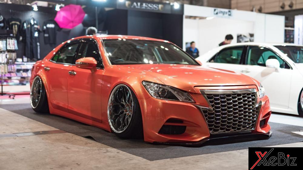 Mỗi năm lại càng có thêm nhiều xe ngoại được trưng bày ở TAS, nhưng về cơ bản, nó vẫn là một triển lãm rất “Nhật Bản”. Bên cạnh xu hướng chế tạo cản trước quá đà vẫn được ưa chuộng bởi giới độ xe xứ hoa anh đào, những kiểu thiết kế đơn giản nhưng ấn tượng cũng được xem trọng, điển hình như chiếc Toyota Crown màu cam này.